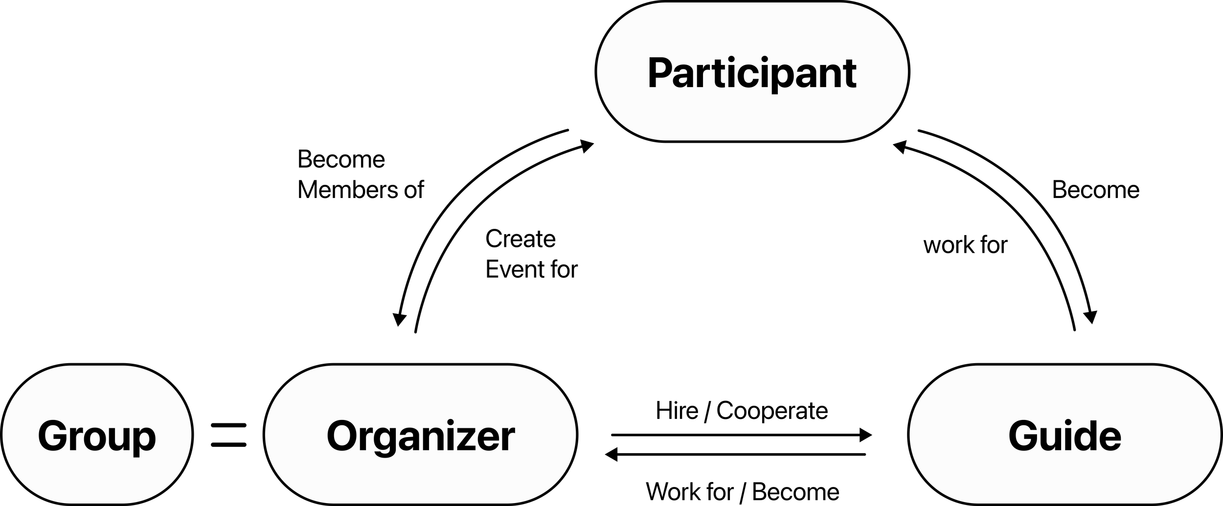 Intuitive information and clear interaction guidance for Event & Trip, Group & guide, and Recruitment posts.