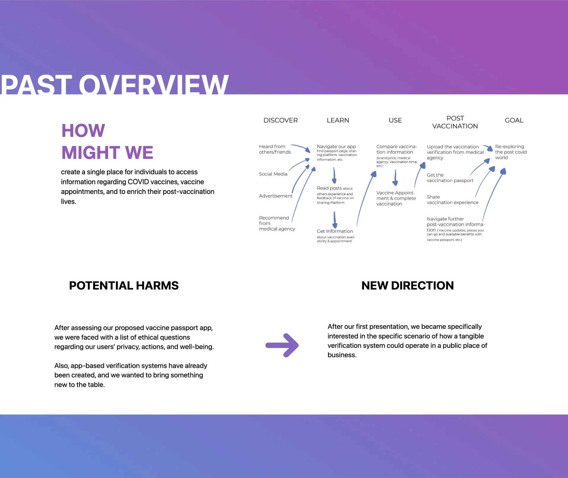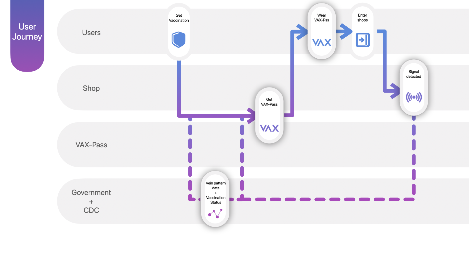 VaxPass is a tangible and non-invasive verification system that operates in public places to allow fully vaccinated individuals to remove their masks in business establishments.